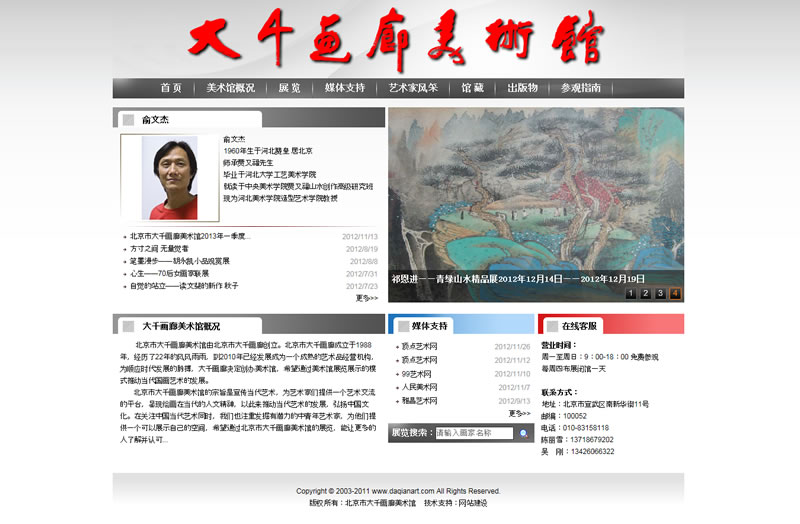 北京市大千畫廊美術館致力于關注有創新的當代藝術,努力為眾多探索當代藝術發展方向的藝術家們打造一個高水平的文化平臺,使大千畫廊美術館成為首都當代藝術的展示窗口,成為一個藝術家的殿堂。
